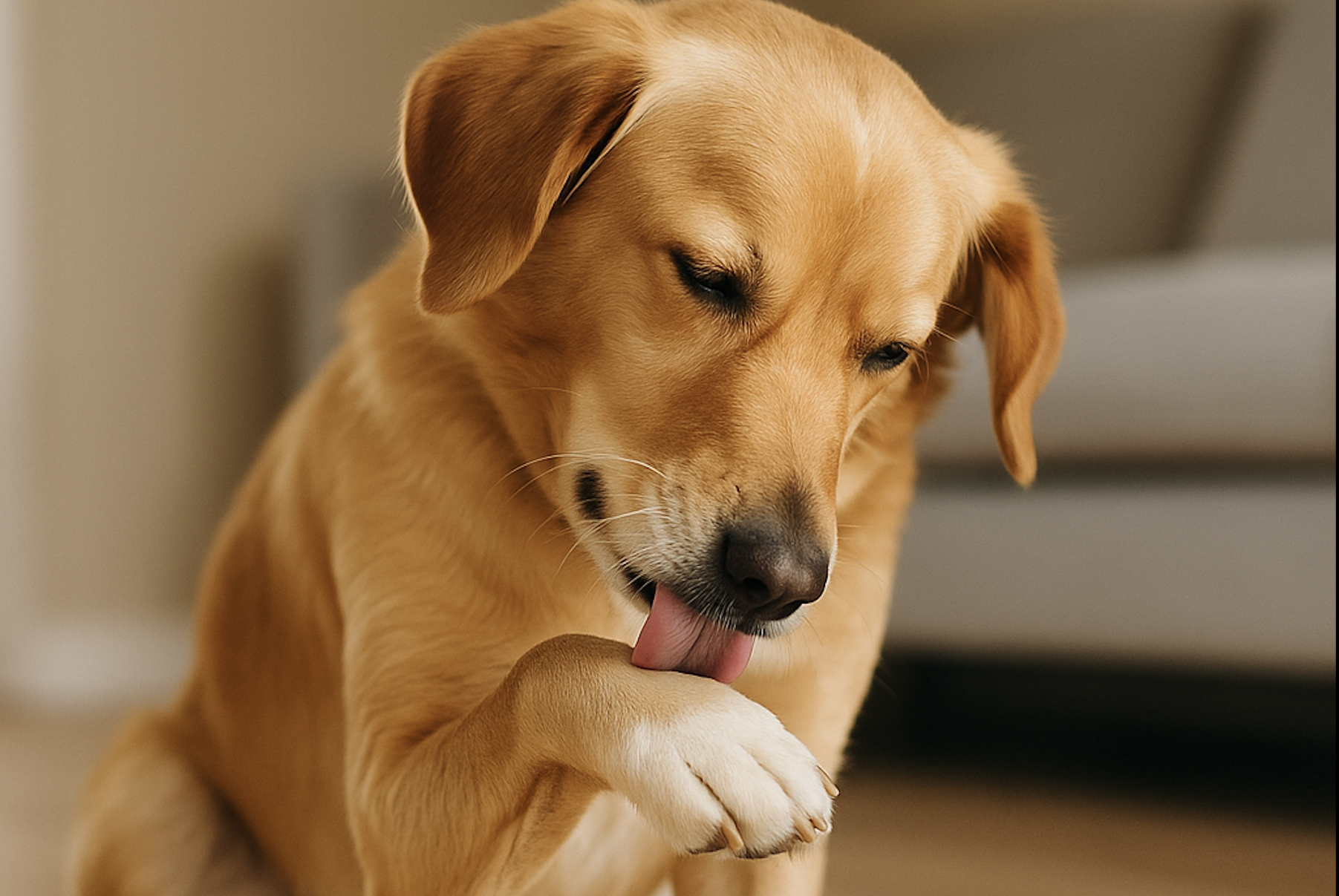 Un chien qui se lèche “sans raison” manifeste souvent un état émotionnel perturbé.